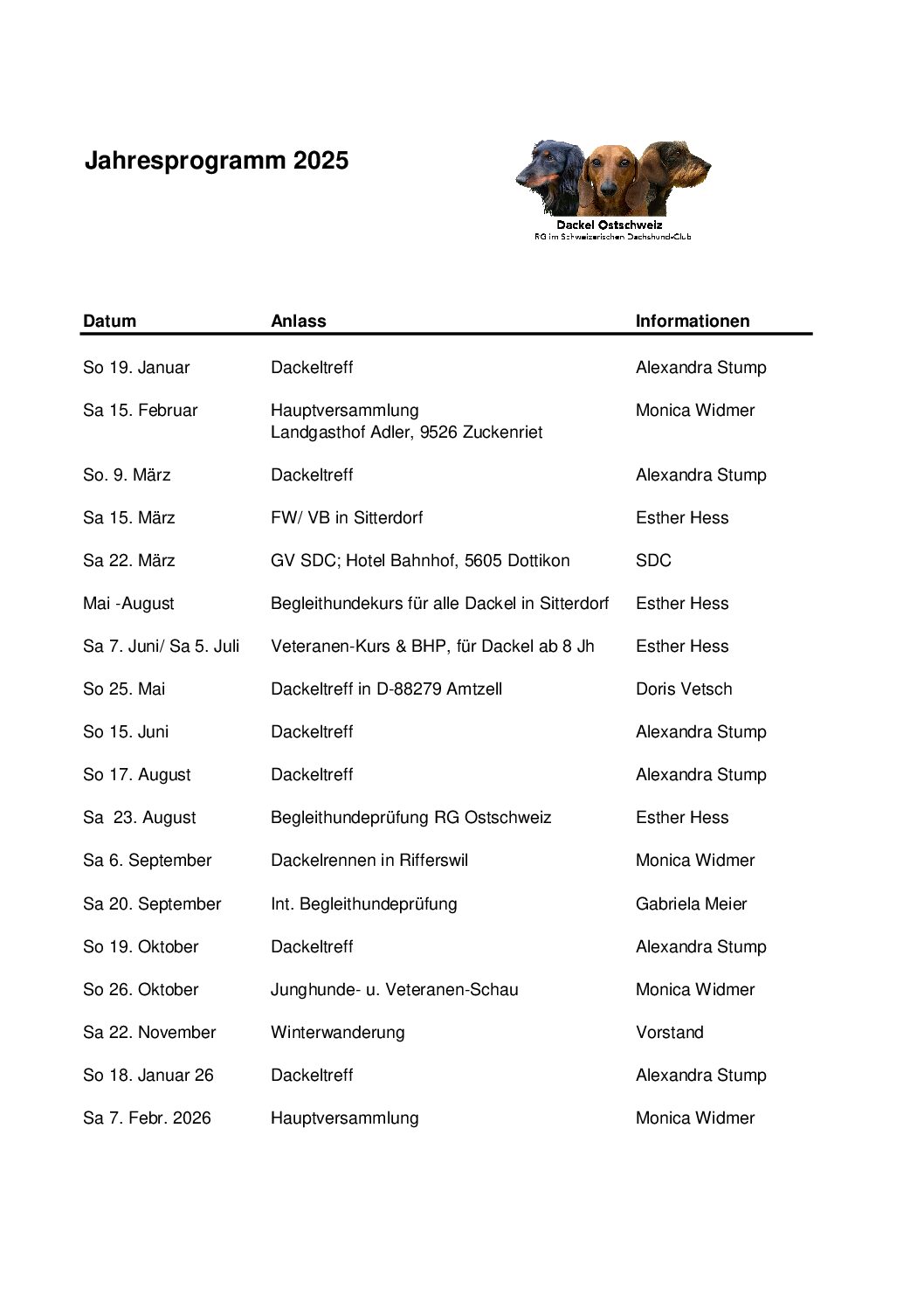 | So 18. Januar 2026 | Dackeltreff | Alexandra Stump |